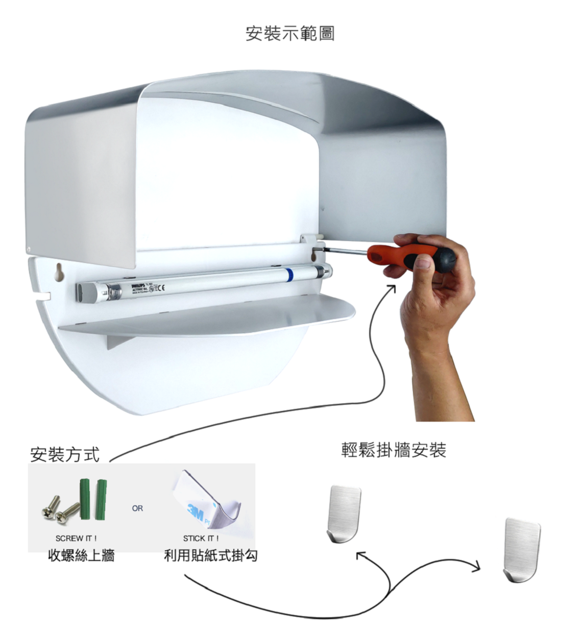 掛上牆後就如掛了一個掛鐘上牆,完全不起眼 - 清潔簡單 , 方便